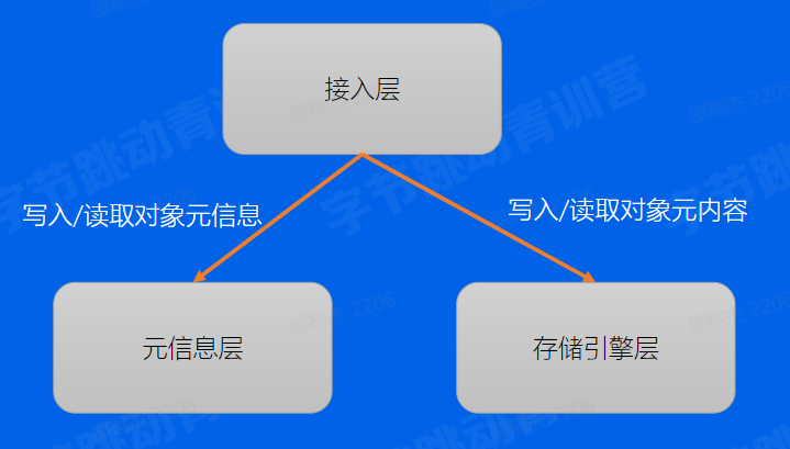 短视频应用上线后,大获成功,对象存储在公有云的使用量特别大,数据量大了,领导决定自研对象存储,这个重任又交给了小明。小明很快想出了一个经典的三层架构: