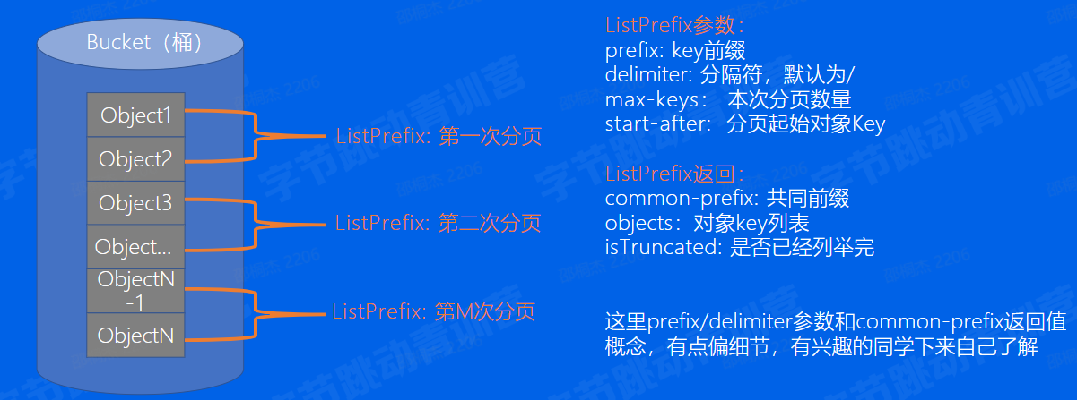 ListPrefix接口是用于查看桶下面有哪些对象,它是一个分页接口,循环调用该接口可以遍历桶下面所有对象