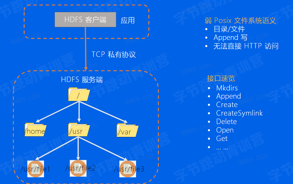 刚刚对比还是比较抽象的,我们来更详细的对比HDFS和TOS的接口;