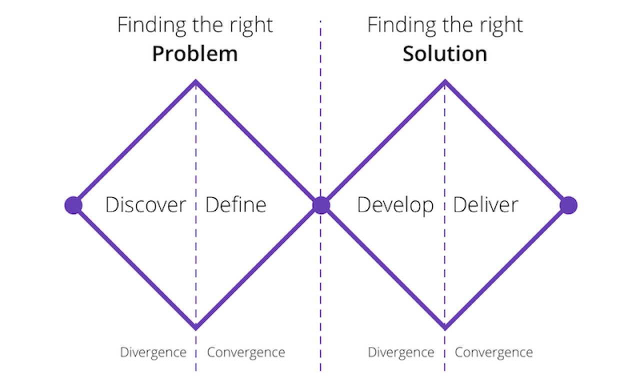 We were heavily inspired by the revised version of Double Diamond design process, which not only includes visual design, but a full-fledged research cycle in which you must discover and define your problem before tackling your solution & then finally deploy it.