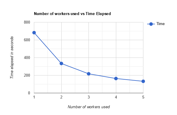 - Graph that shows the time it takes to crack the hash of password 'zzzzz' against the number of workers used.
