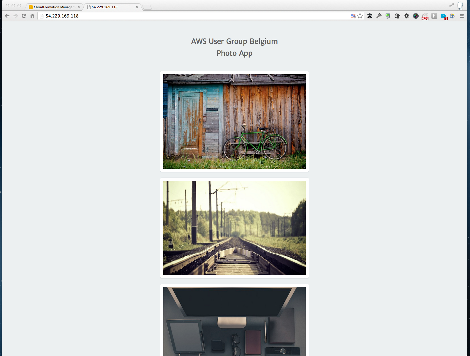 Code repository accompanying the ICAB Tech Talk. The node.js application was forked from another repository: AWS-UGB-PhotoApp