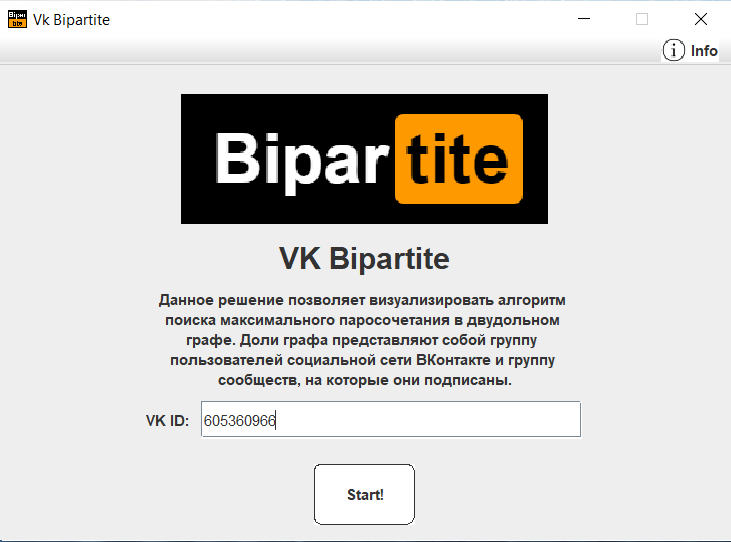 В текстовое поле введите id пользователя и нажмите Start! или кнопку Enter