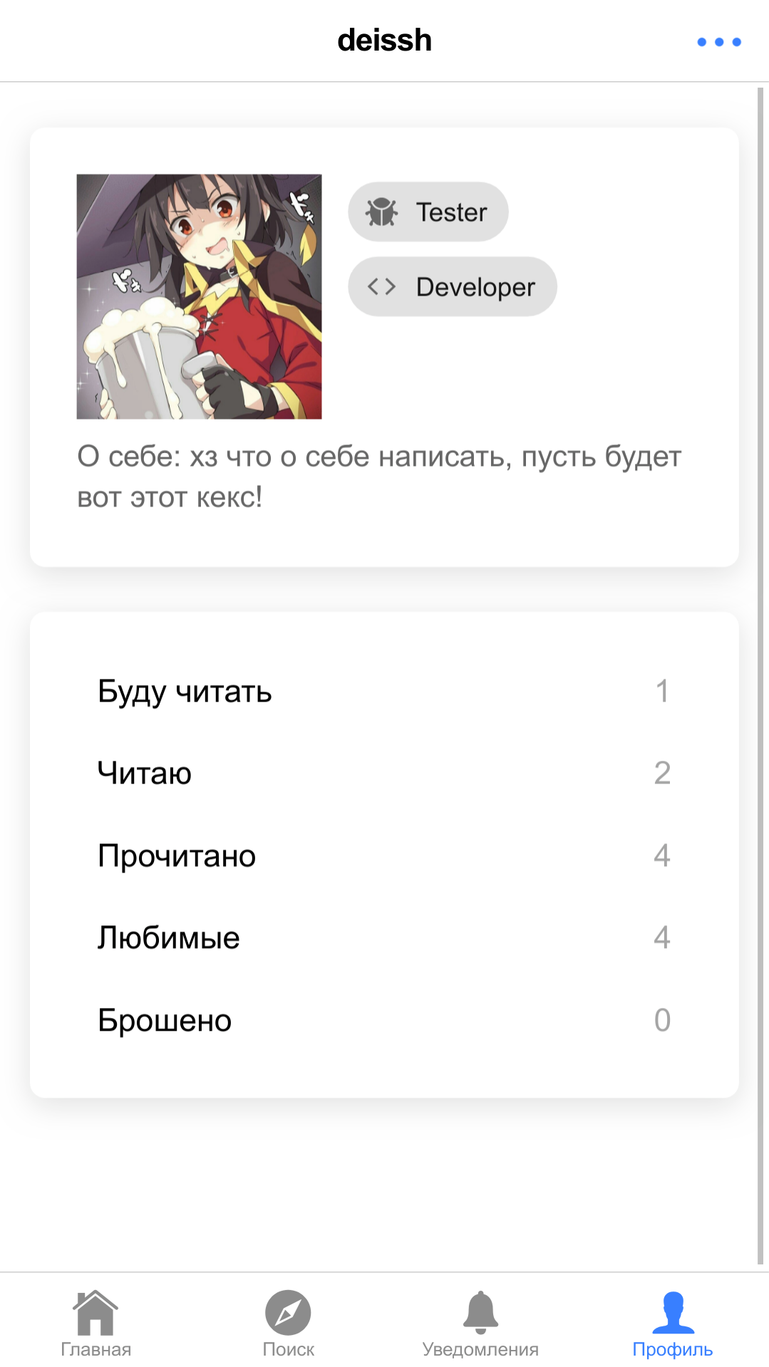 - User custom manga lists (favorite, in progress, readed, thrown)