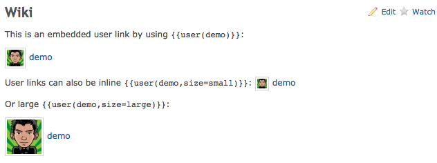 Adds a {{user(login_name)}} macro to the Redmine's wiki engine.