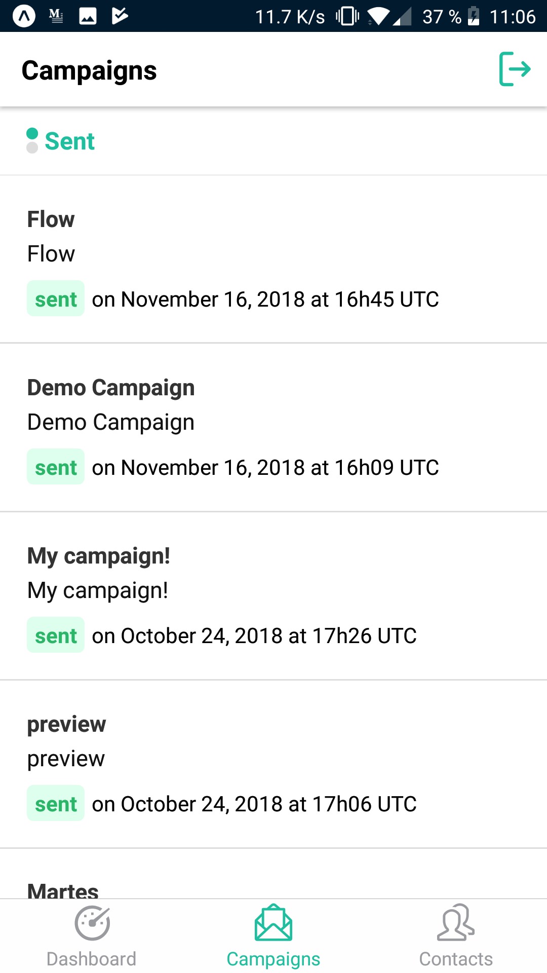 - Browse campaigns (draft and sent) and see their information, content and stats