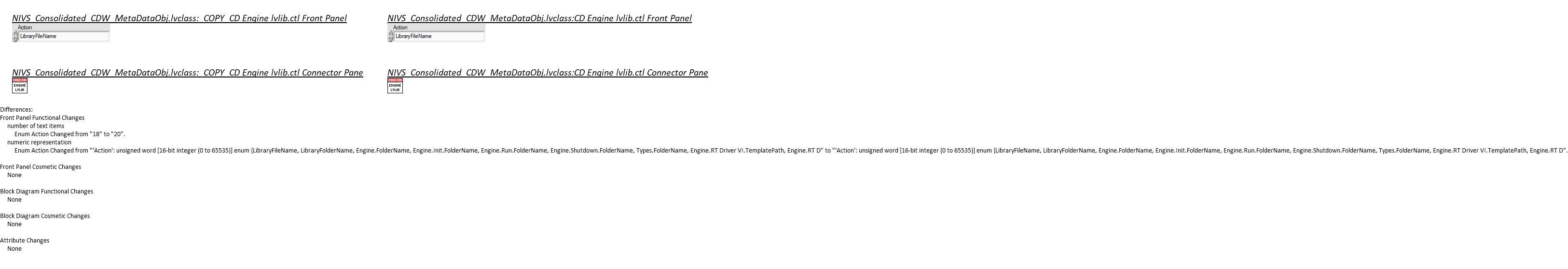 Bleep bloop! LabVIEW Diff Robot here with some diffs served up hot for your pull request. Notice something funny? Help fix me on my GitHub repo. NIVS_Consolidated_CDW_MetaDataObj.lvclass--Engine - Script RT Driver For Runtime Configuration.vi.pngNIVS_Consolidated_CDW_MetaDataObj.lvclass--System Explorer - Add content to System Explorer library.vi.pngNIVS_Consolidated_CDW_MetaDataObj.lvclass--System Explorer - Add PPL content to System Explorer library.vi.pngNIVS_Consolidated_CDW_MetaDataObj.lvclass--System Explorer - Copy PPLTemplates for System Explorer.vi.pngNIVS_Consolidated_CDW_MetaDataObj.lvclass--System Explorer - Copy Templates for System Explorer.vi.pngNIVS_PPL_Inline HW Interface (Inline-Async).lvclass--Create Engine Folder and Copy RT Template.vi.pngThe following VIs could not be diffed: