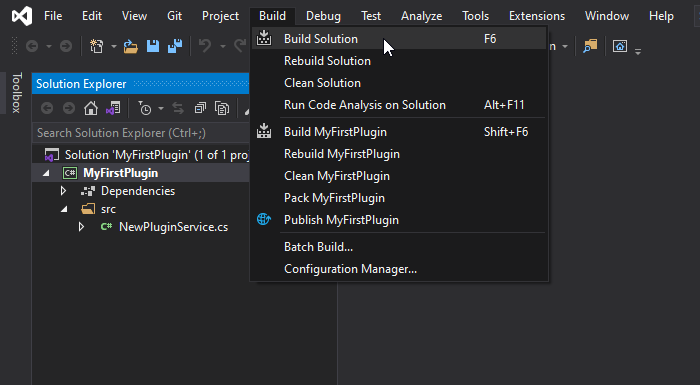 9. In the "Tools" menu, select "NuGet Package Manager/Manage NuGet Packages for Solution"
