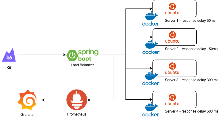 6가지 알고리즘을 Spring Boot로 직접 구현하고, Docker 기반 4대 서버 환경에서 K6 부하 테스트를 수행했습니다. Prometheus + Grafana로 8개 메트릭을 실시간 수집하여 알고리즘별 성능 특성, 장애 대응력, 부하 분산 패턴을 정량적으로 비교했습니다.