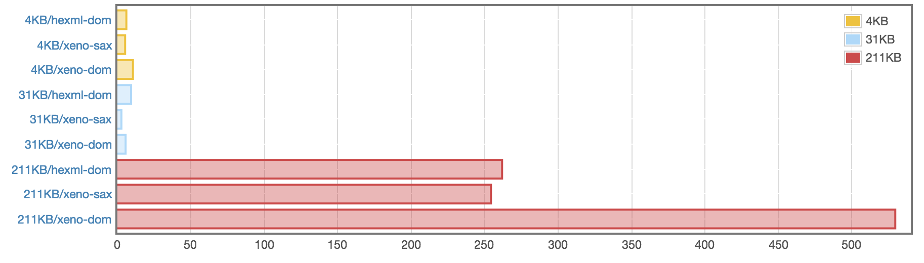 document. Hexml actually does more work, allocating a DOM. Xeno.DOM