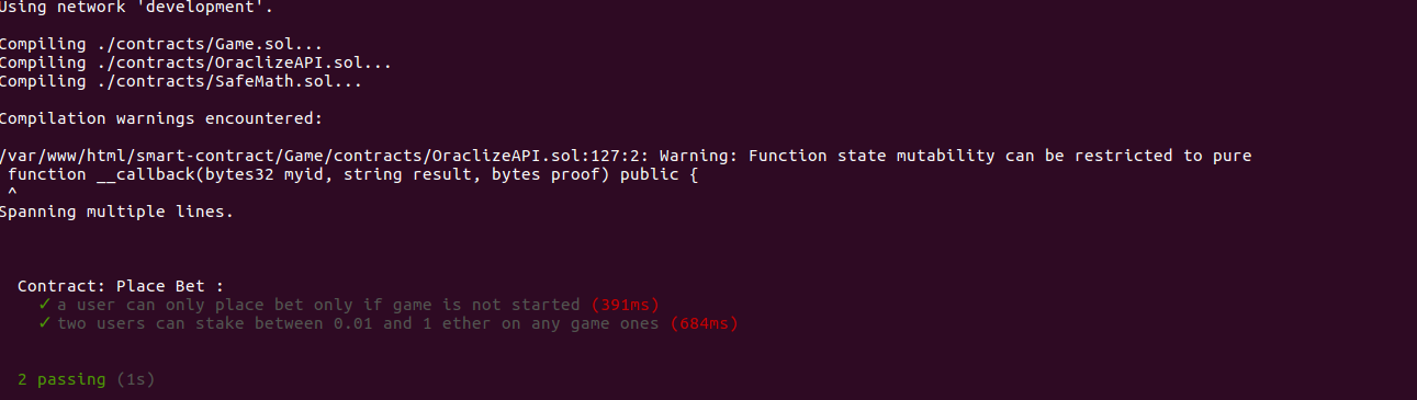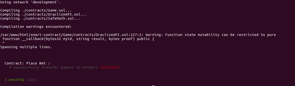 In future posts about this topic, we might considering launching it on a testnet like rinkeby and build an actual UI to place bet, interacting with it using web3 and placing bet with wallet like metamask.