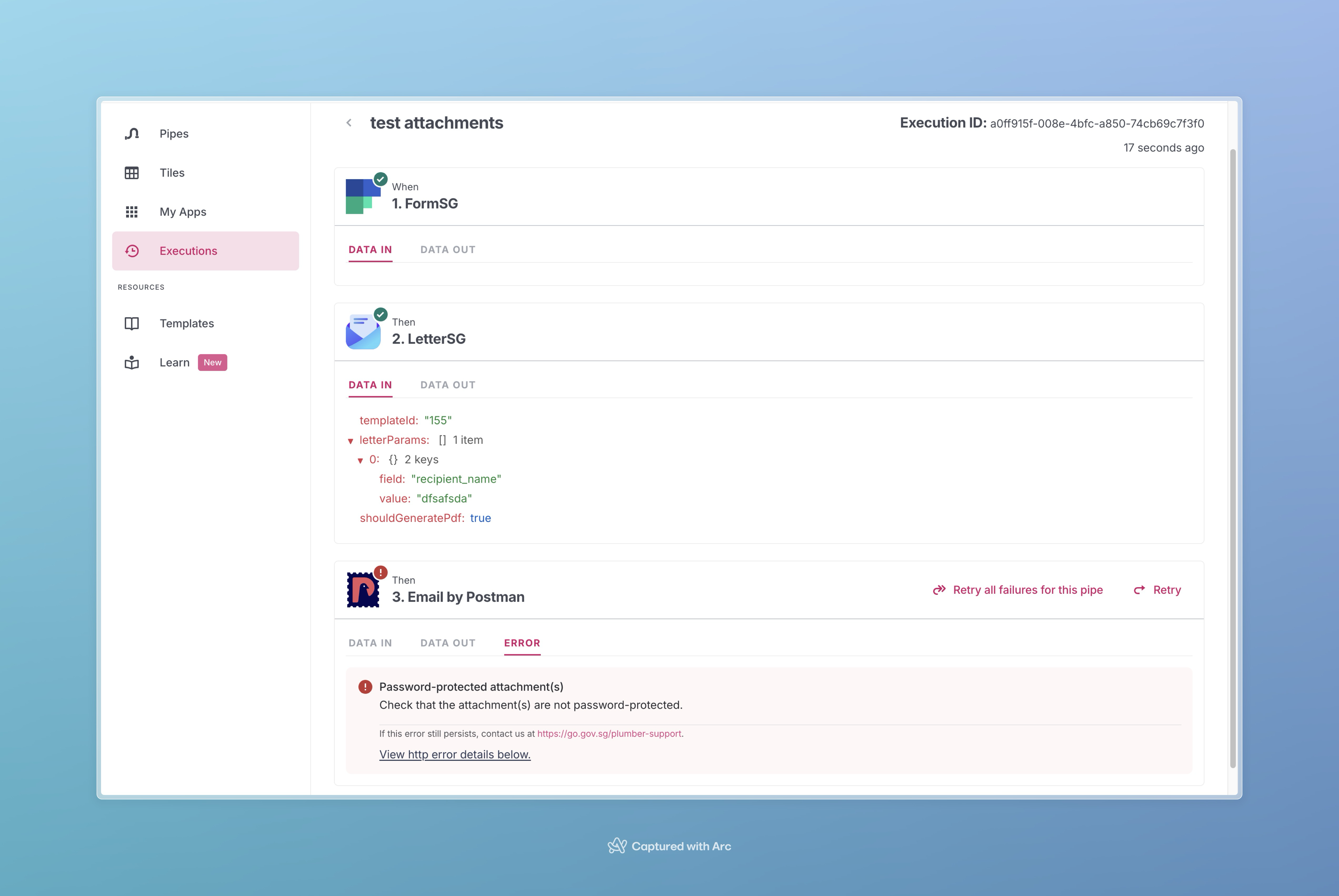- [ ] Execution page shows error with "Password-protected attachment(s)"