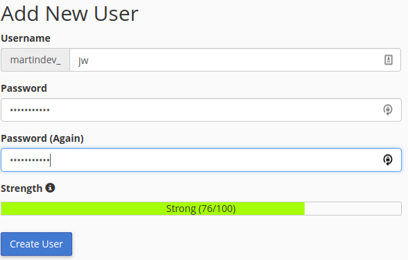 pip3 install -r requirements.txt - Now we need to create a MySQL database for Janeway to use. Reclaim has an interface for this, create a new database (remember the name you use) and then create and add a privileged user.