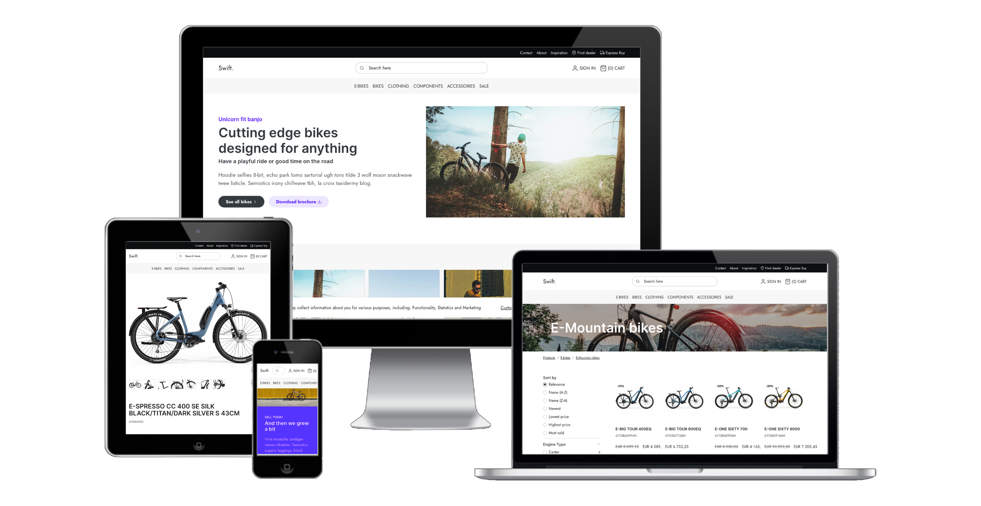 Swift is a plug-and-play standard solution which allows you to create beautiful mobile-friendly websites. It is fast and easy to build ecommerce sites on Dynamicweb for both B2C and B2B. Using configuration and almost no coding.