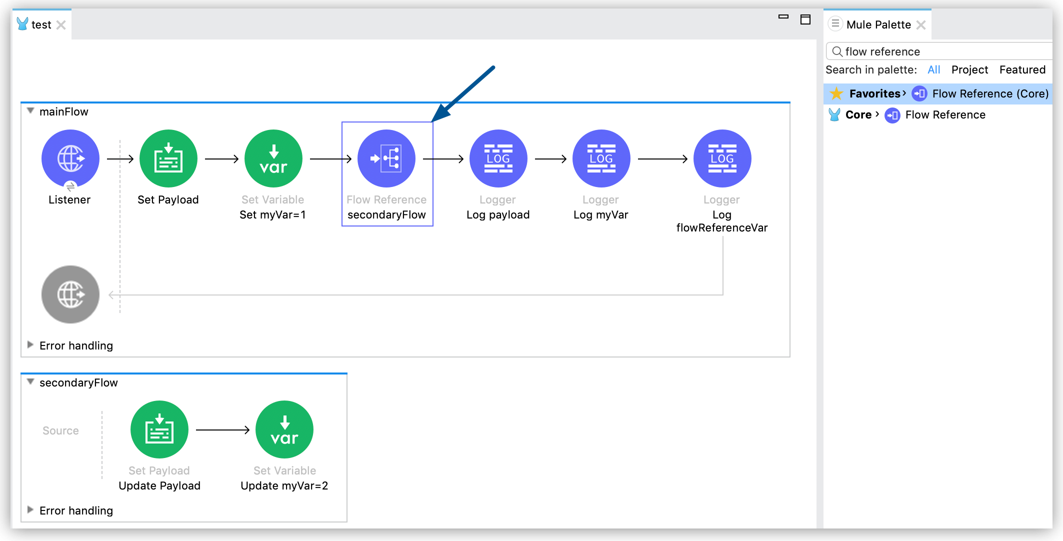- Flow References are processors which can call another flow by name.