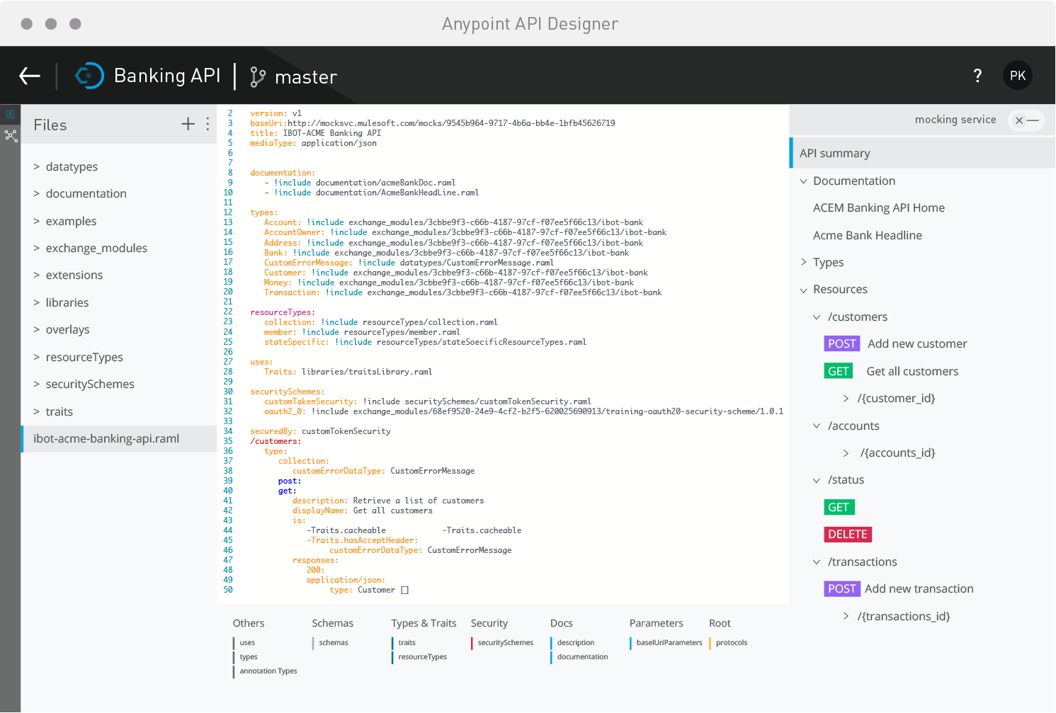 API Design Perspective: includes a Git Staging tab, that lets you see changes in the editing pipeline and resolves conflicts when needed by a Git version control system.