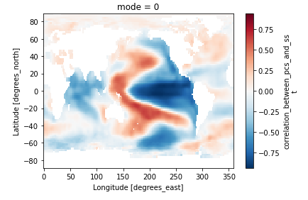 The EOF applied to SST in this notebook seems to have its correlation signs inverted (https://github.com/pangeo-data/pangeo-ocean-examples/blob/master/noaa_ersst_variability.ipynb)
