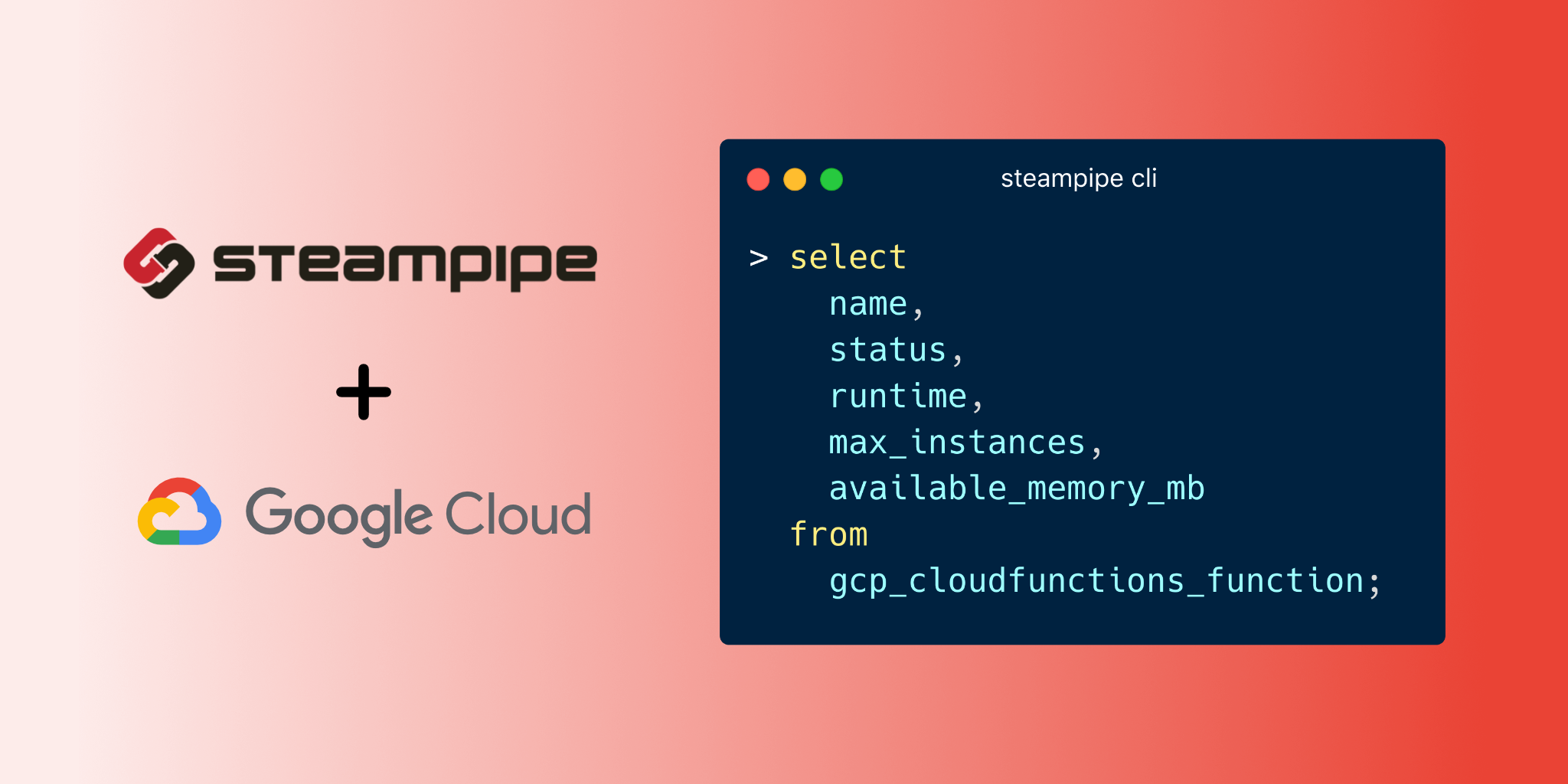 Use SQL to query infrastructure including servers, networks, databases and more from GCP.