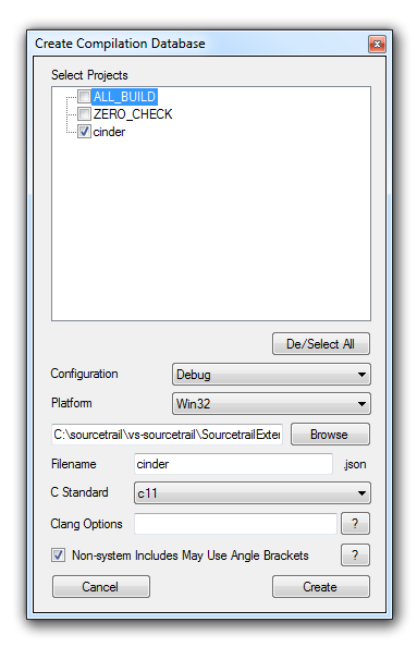 As a Clang based tool Sourcetrail supports the JSON Compilation Database format for simplified project setup. This extension enables you to generate a JSON Compilation Database from your Visual Studio projects and solutions.