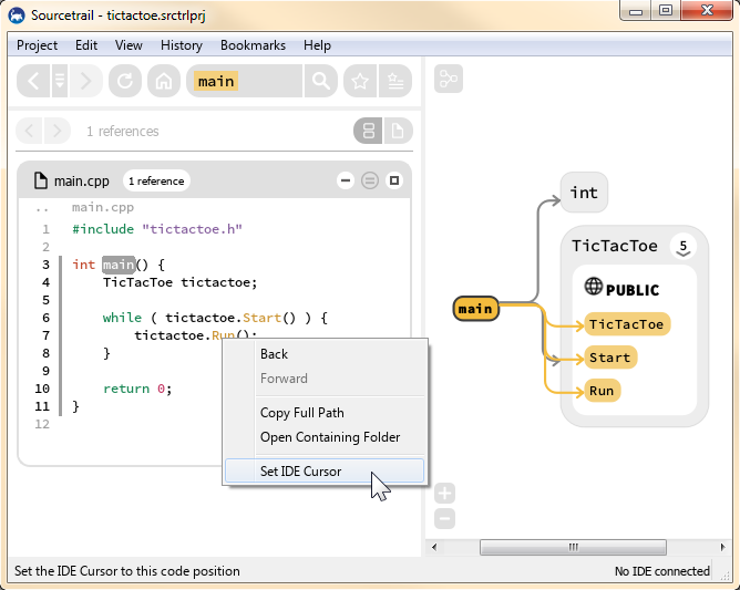 Whenever you read some source code inside Visual Studio that you actually want to explore in Sourcetrail you can use this extension to activate the right-clicked symbol in Sourcetrail.