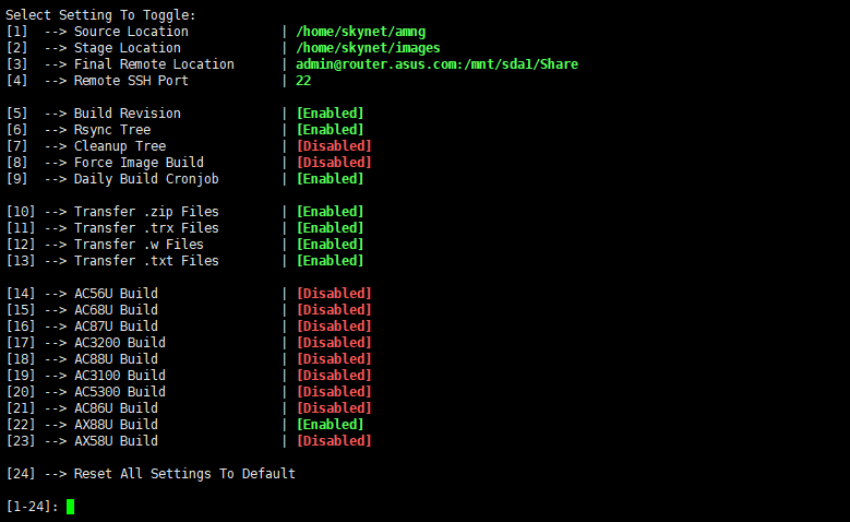( amcfwm settings bac88 enable|disable ) Enable/Disable Building Of AC88U Image