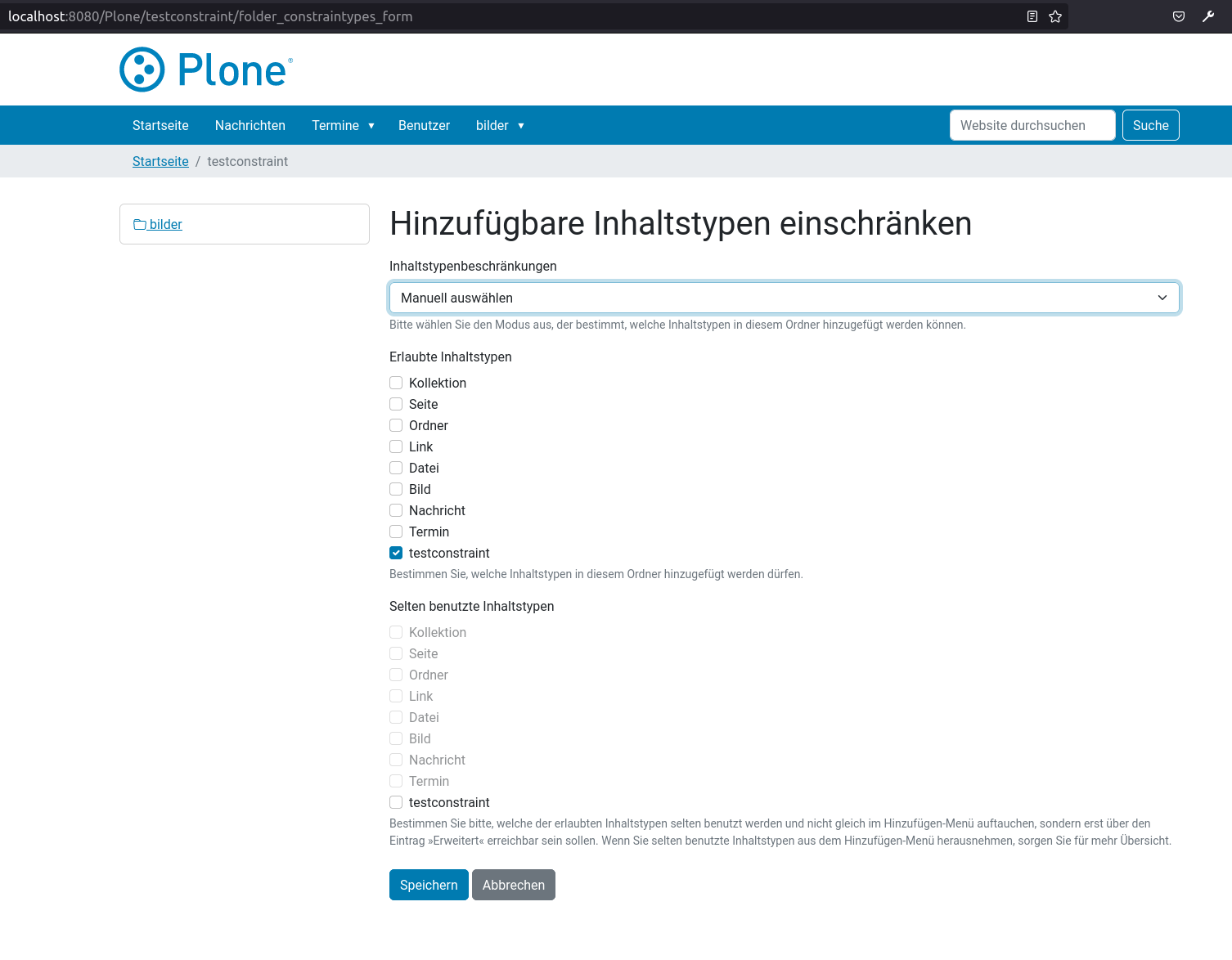 ISelectableConstraintTypesbehavior enabled allows any type to be pasted into, even if the type is otherwise disallowed via thefolder_constraintypes_form.2) ISelectableConstraintTypes enabled: