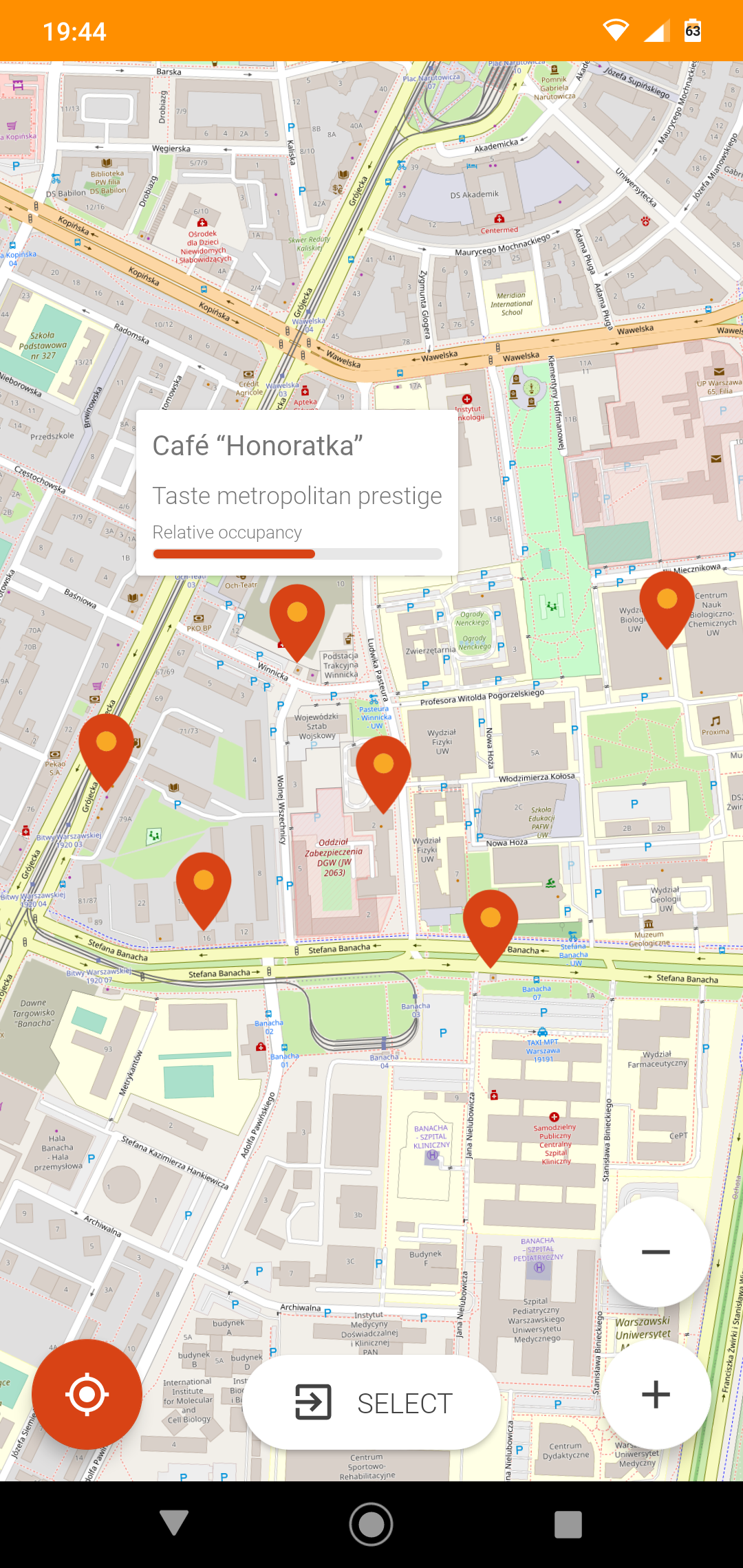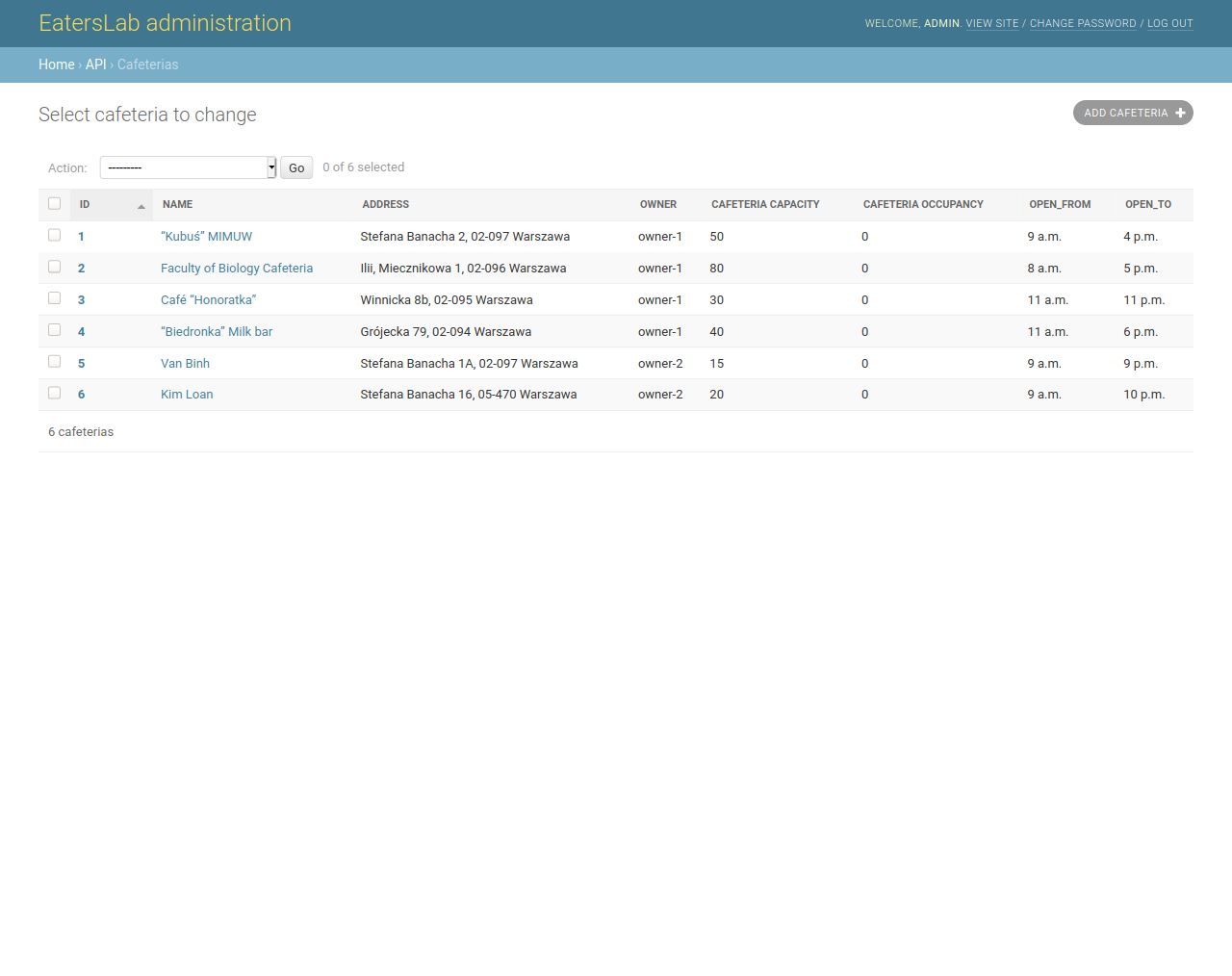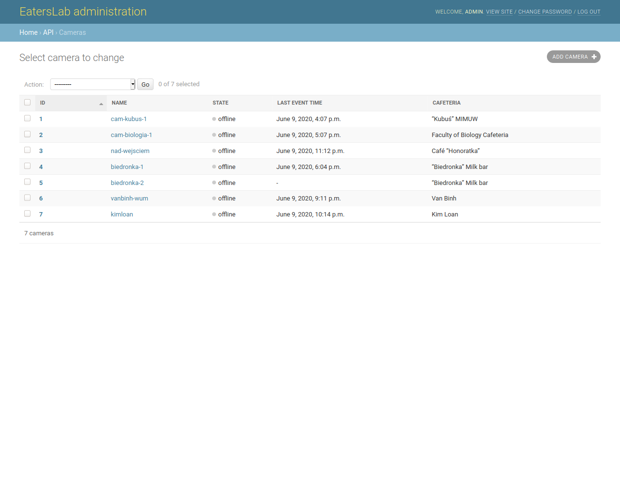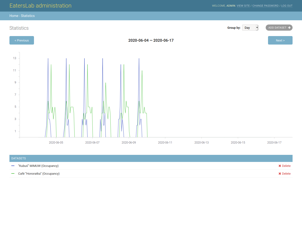 EatersLab is a system monitoring live occupation of cafeterias. System of cameras counts visitors entering and leaving lunchroom space. Central endpoint aggregates occupancy reports for owners and customers using mobile or web clients which also serve as information/feedback loop.