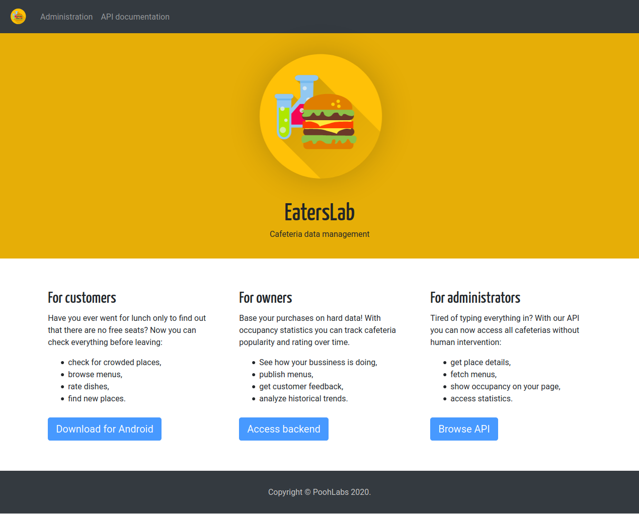 YAML API specification: https://eaterslab.herokuapp.com/api.yaml