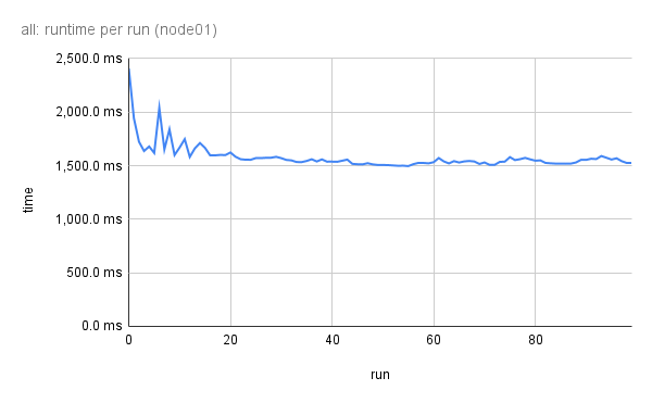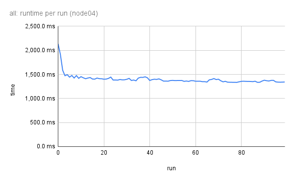 Also below is runtime stabilisation plot (I perform 100 runs of summing a billion elements on each core).