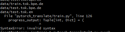 While running the command bash pytorch_translate/examples/train_iwslt14.sh, an invalid syntax error is thrown. Any help on this would be appreciated.
