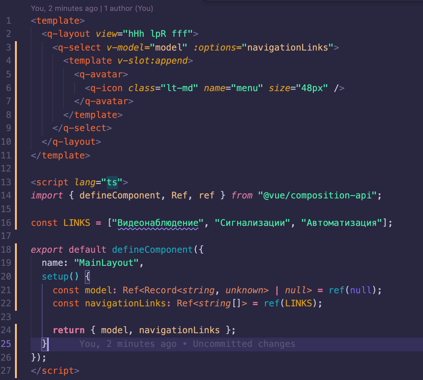 Property or method "navigationLinks" is not defined on the instance but referenced during render. Make sure that this property is reactivein components://src/layouts/MainLayout.vue