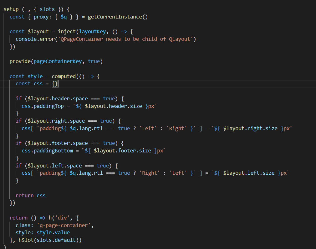 After much research, I found that QLayout uses wrappers for the various parts, drawer, page in order to remove layout concerns from the code that you write. Qpagecontainer is visible because it has to be in the layout in order to have a place to inject the pages with the router. |
