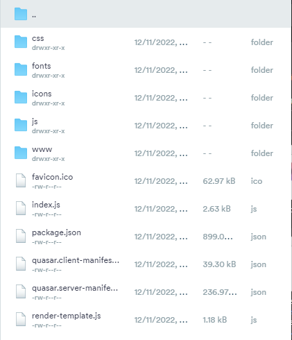 Original compile (quasar build -m ssr) -> does not find components, its trying to access them from (url).com/js/ but they are in /www/js