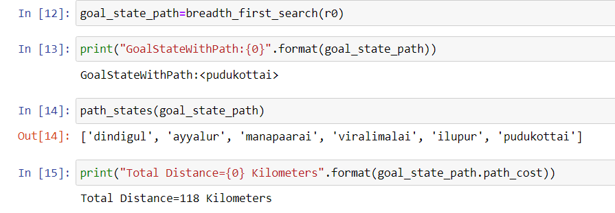 print("Total Distance={0} Kilometers".format(goal_state_path.path_cost))The Algorithm searches all the nodes for the most eligible node, and then it goes into the deep, to find the next eligible node to reach the desired destination.