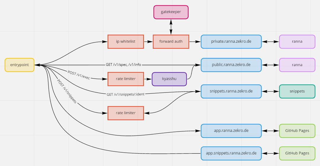 Below, you find a simplified scheme how requests are routed through the ranna "network".