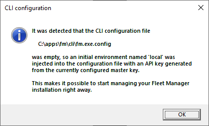 which means that the management CLI has been confgured to manage your Fleet Manager installation.