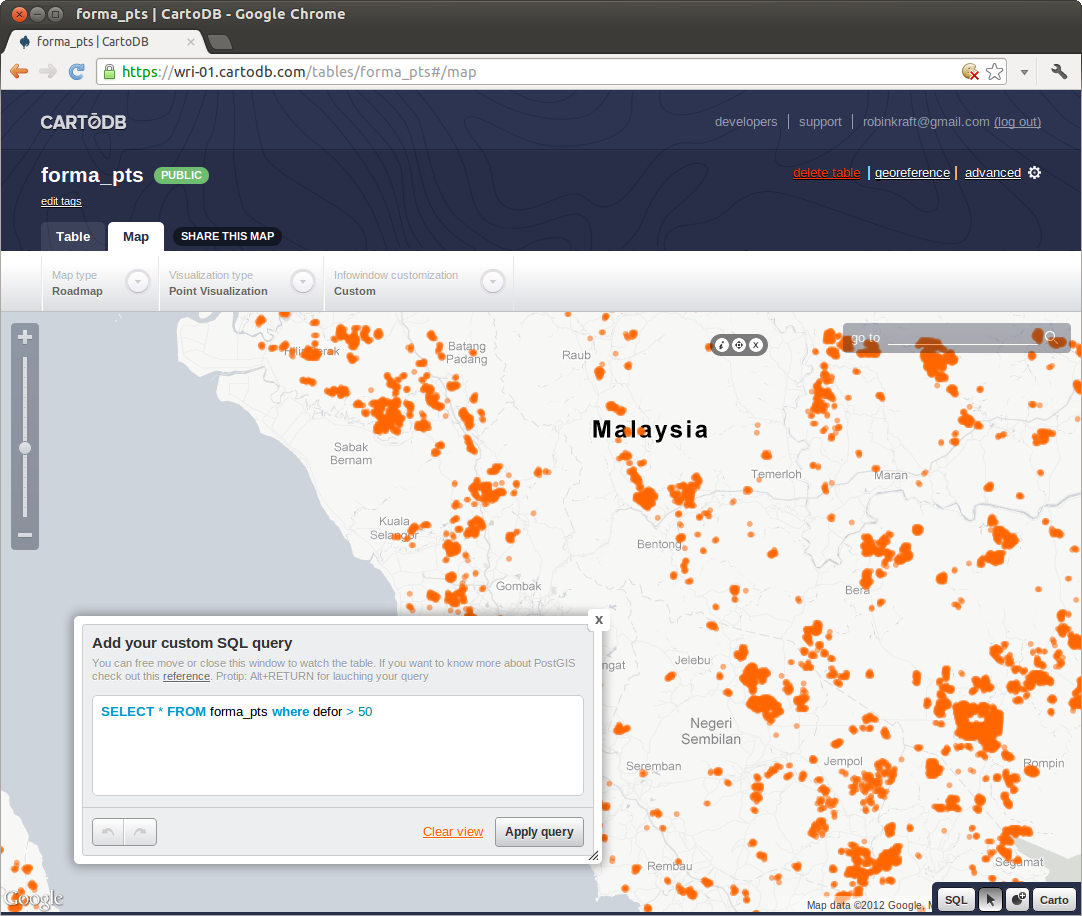 (cdb/query "SELECT * FROM table" "user" :format "geojson")