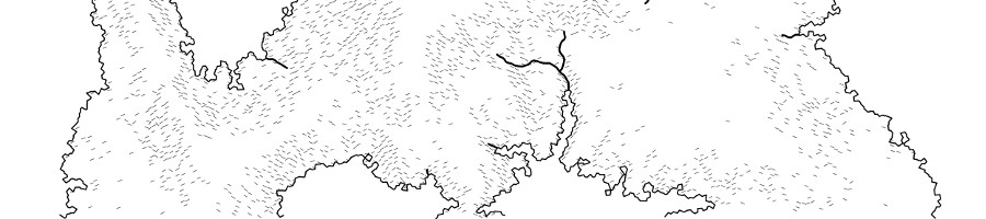 The height map is shaded based upon the horizontal component of the slope. Short strokes are drawn at faces where the slope is above some threshold. Strokes pointing upwards from left to right are drawn if the height map is sloping upward from left to right, and strokes pointing downward from left to right are drawn if the height map is sloping downward from left to right.
