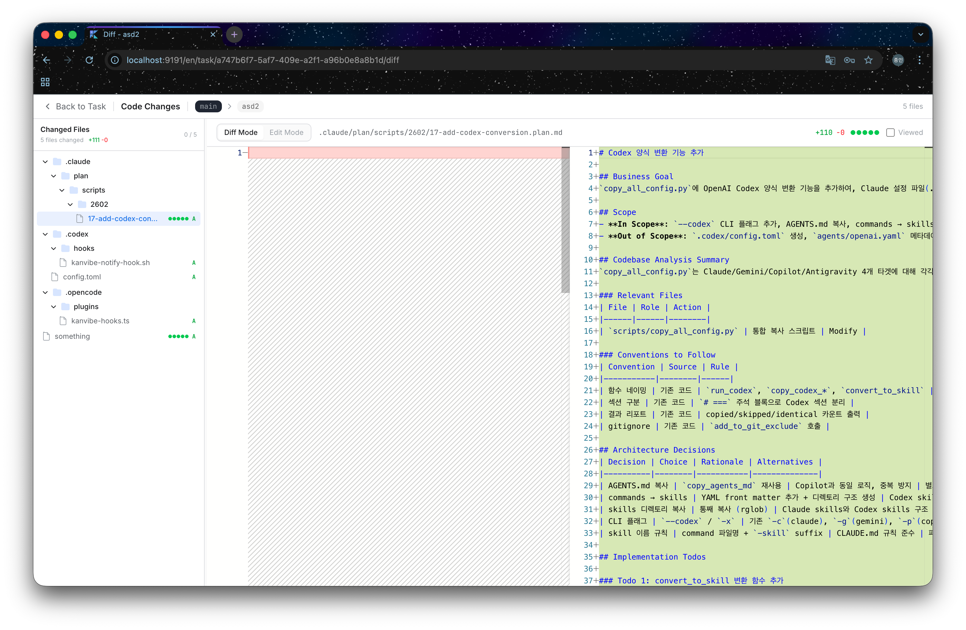 6) GitHub-Style Diff Review in Task Detail