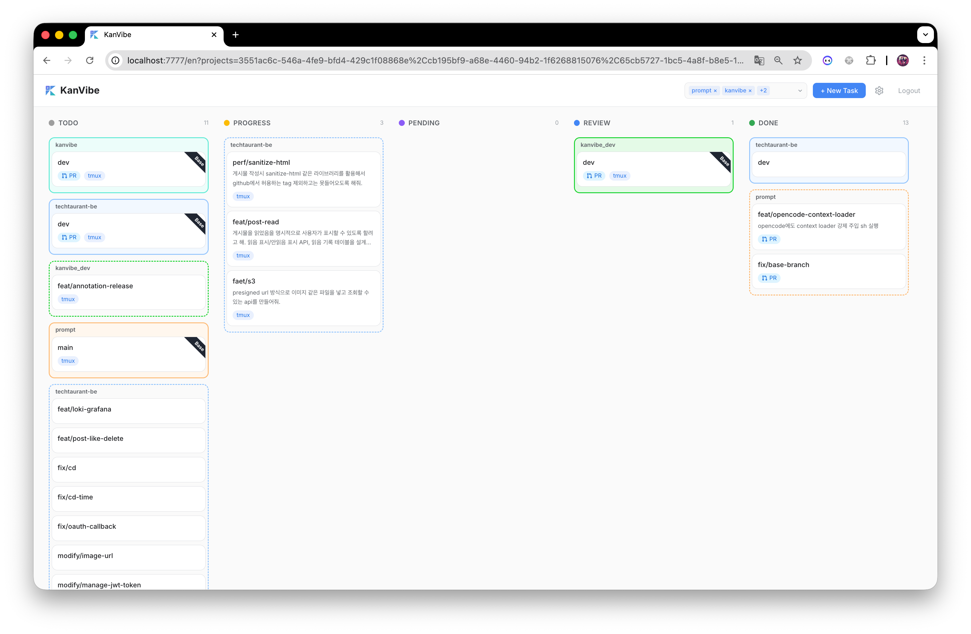 - You can move from task execution to review without leaving KanVibe.