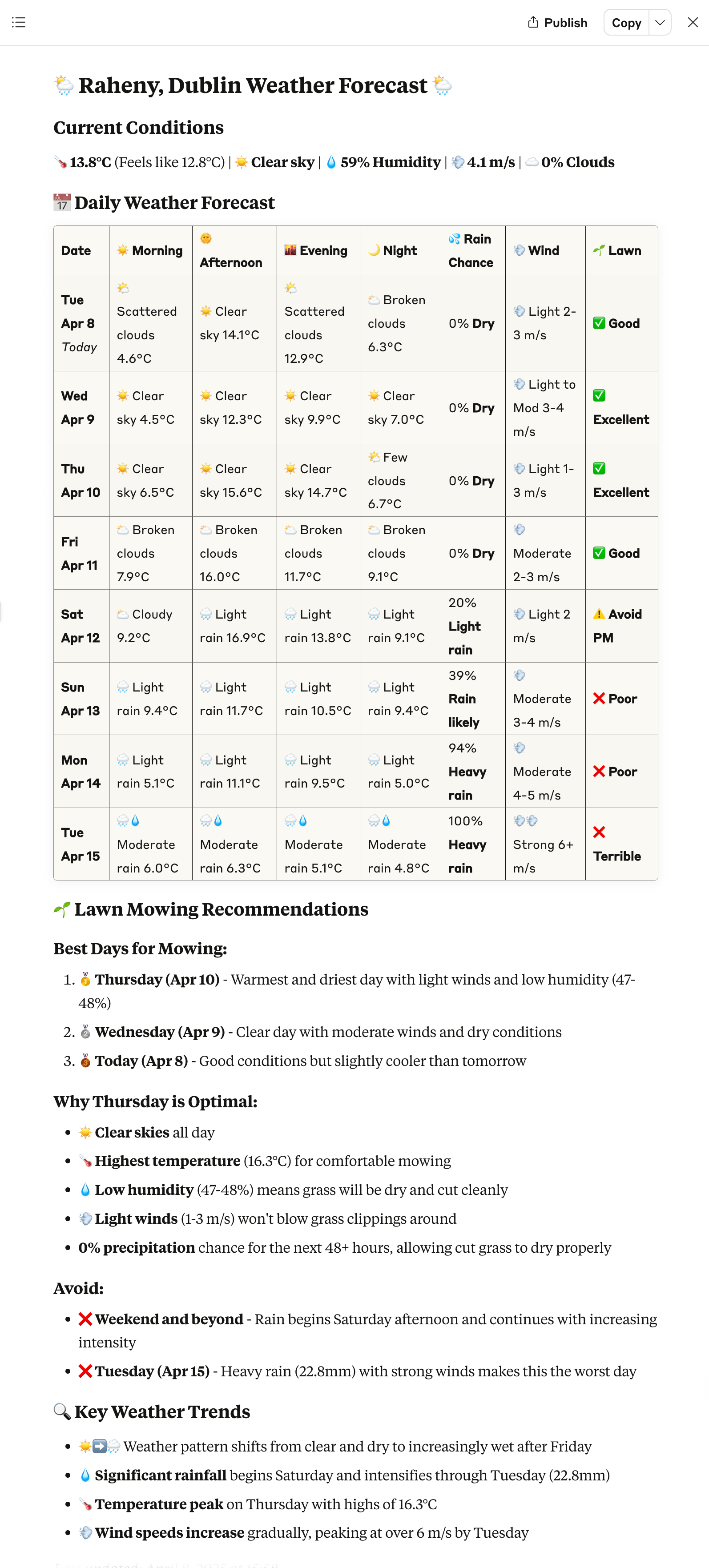 - “🪴 When’s the best evening to work in my garden this week?”