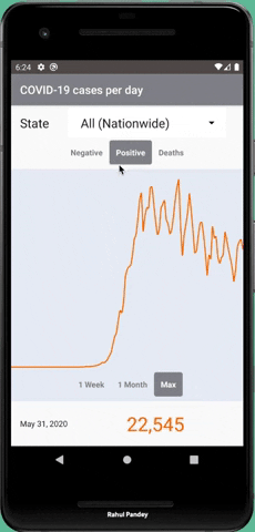 An open-source Android COVID-19 tracking app built using core UI components from the Robinhood stock trading app. The app displays key metrics around the growth of coronavirus, including the number of positive cases, negative cases, and deaths per day.
