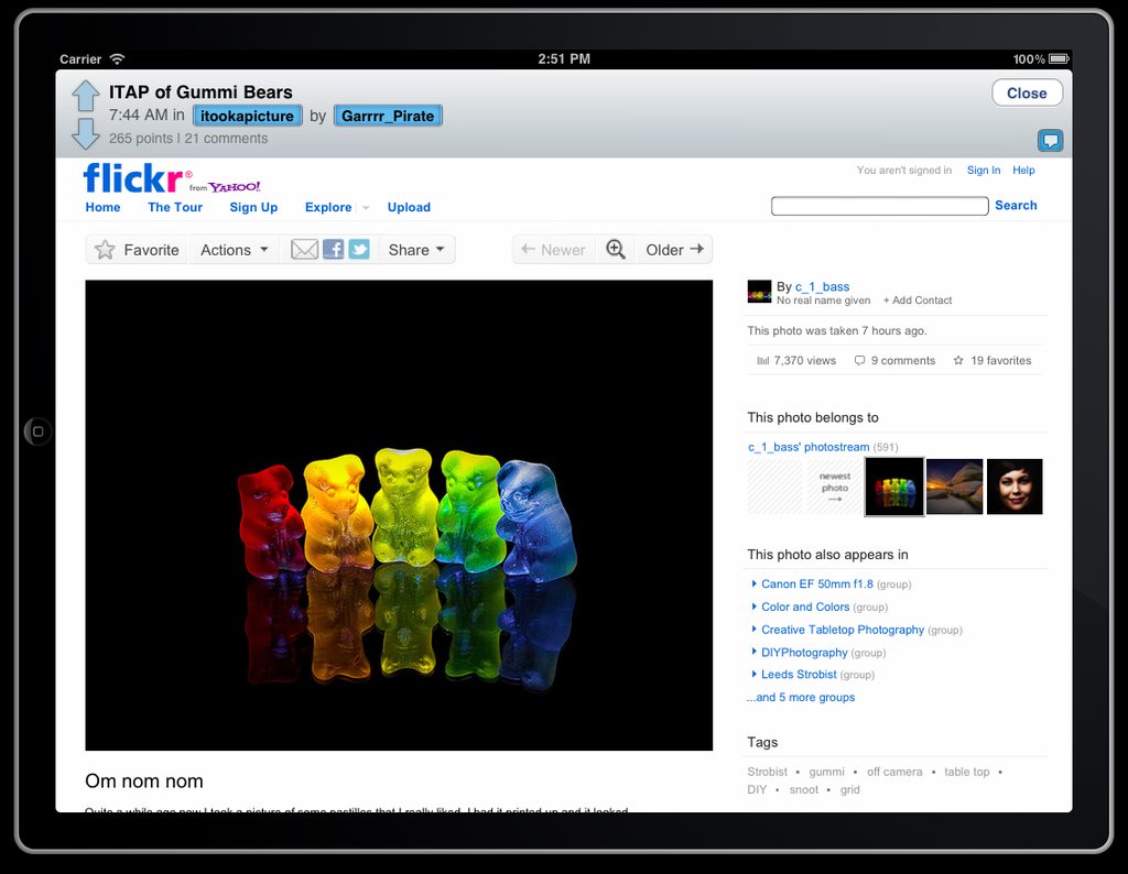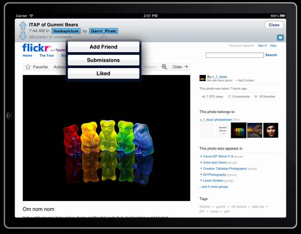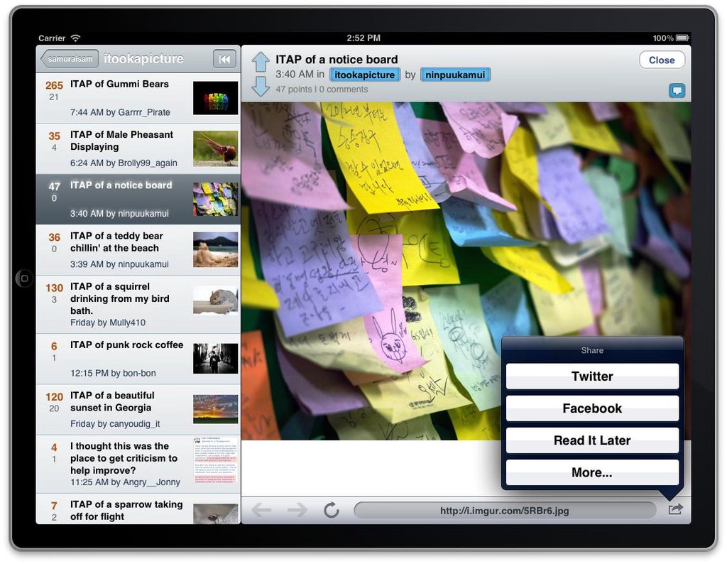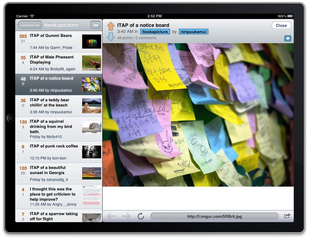 - "Magazine" which is sort of like an endlessly scrolling wall of images that link to reddit stories. Great for viewing photograph-heavy reddits.