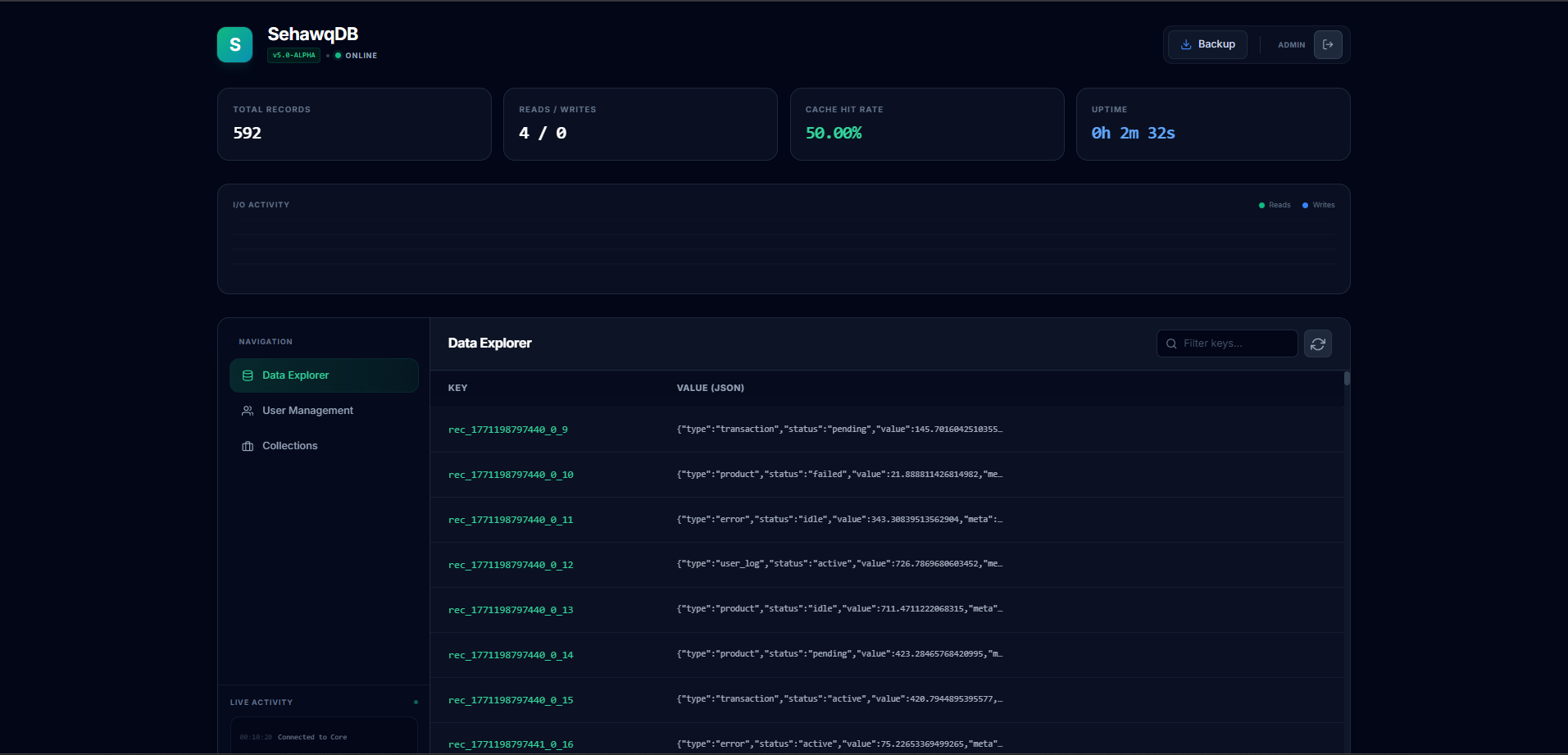 new SehawqDB({ replication: { role: 'replica' } });Previous JSON databases crashed when the file got too big (100MB+).
