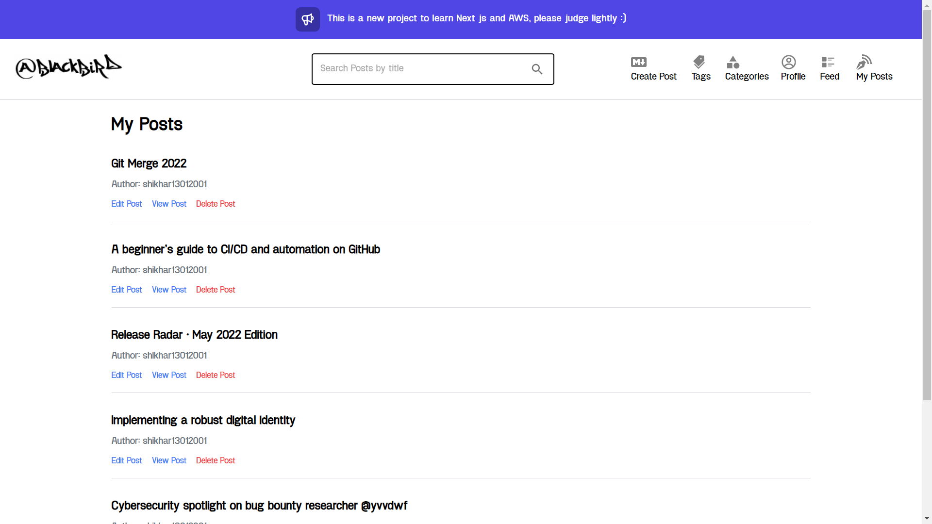 This project is an educational asset demonstrating the use of AWS amplify, Graphql API, Appsync, Material UI and amazon cognito. This project belongs to Black bird and this repo will remain dormant until final decision.