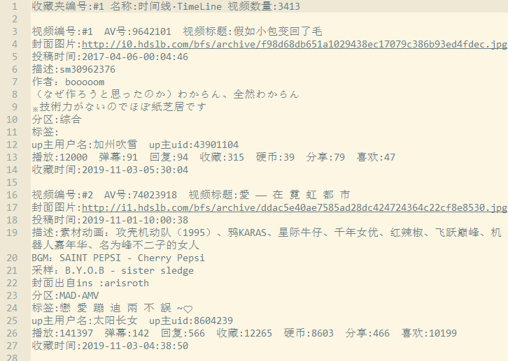 This is a crawler for downloading personal favorites information of "bilibili.com". The data sources are bilibili.com and biliplus.com. It supports saving as txt files and csv files.