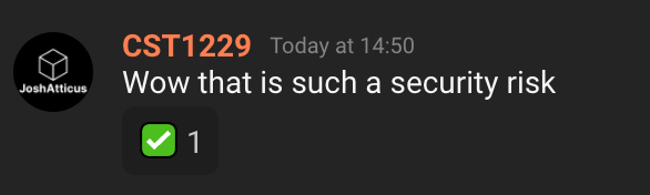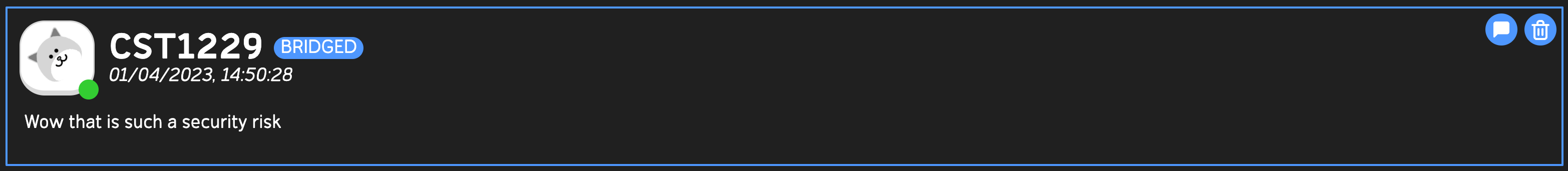 Because it uses the Revolt username as the username for Meower, anyone can change their Revolt username to a Meower username to post as them with the BRIDGED tag.
