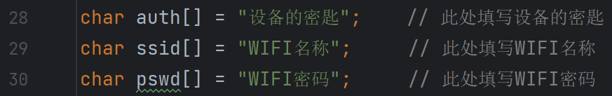 将main.cpp中的如下代码修改为自己的,设备密匙见下文。