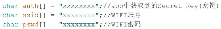 将如下代码修改为自己的,设备密匙见下文。