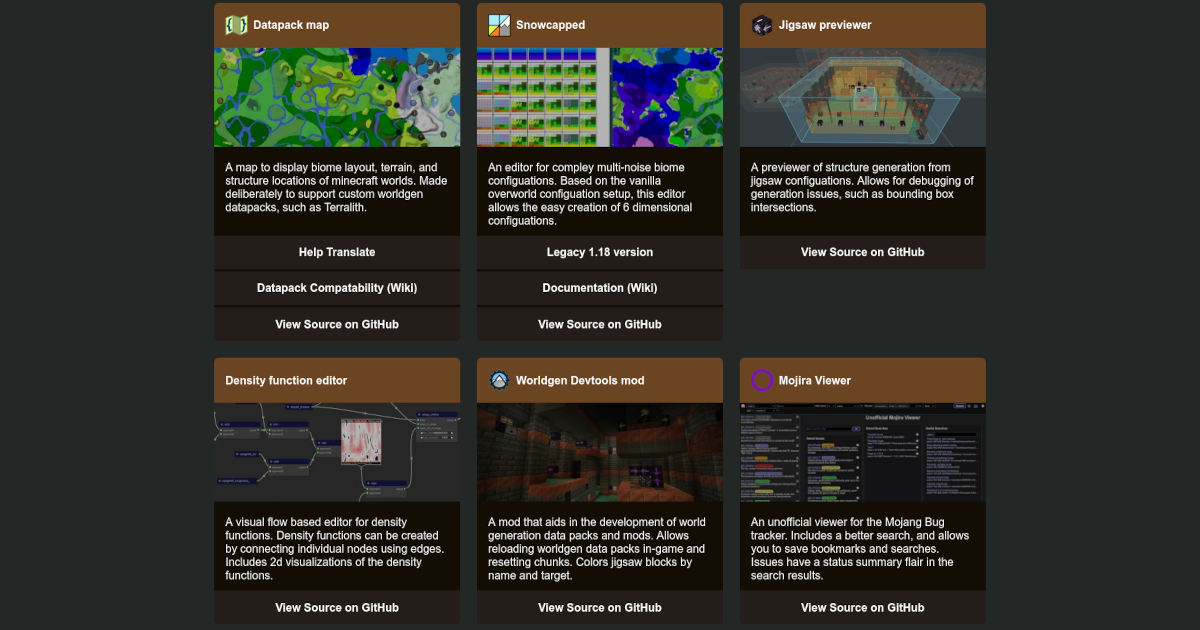 I made tools for the creation of Minecraft worldgen datapacks (and mods) that allow you to display and modify biome layouts, debug structure generation, and design terrain using density functions. I also made a mod the simplifies in-game testing.